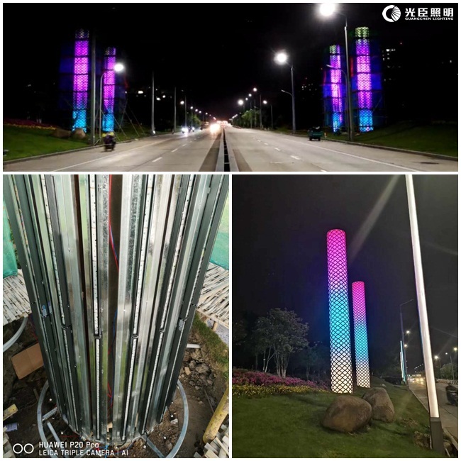 瀏覽:-光臣此次項目是常洪隧道口兩側(cè)廢棄立柱的亮化提升,在綠化帶旁“光禿禿”地矗立著四根柱子,顯得有些突兀。由于常洪隧道道路運行性質(zhì)發(fā)生變化,隧道原收費亭及頂棚失去原有功能,限制車道寬度,影響交通便利。為了做好隧道周邊環(huán)境綜合治理,進(jìn)一步提升隧道交通便利,2018年寧波市城管市政部門正式對收費亭及頂棚進(jìn)行拆除。但拆除后留存的立柱顯得不太美觀。