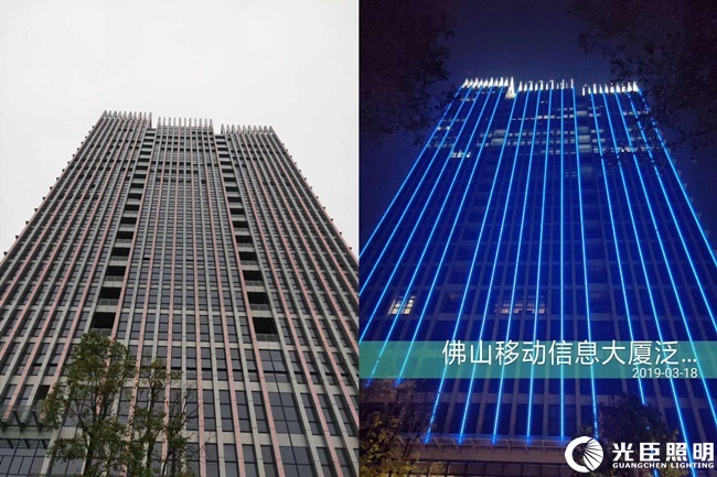 瀏覽:-佛山移動信息大廈地屬佛山市黃金地段,此次亮化項目一完工,其夜景亮化效果更是成為周邊亮點。