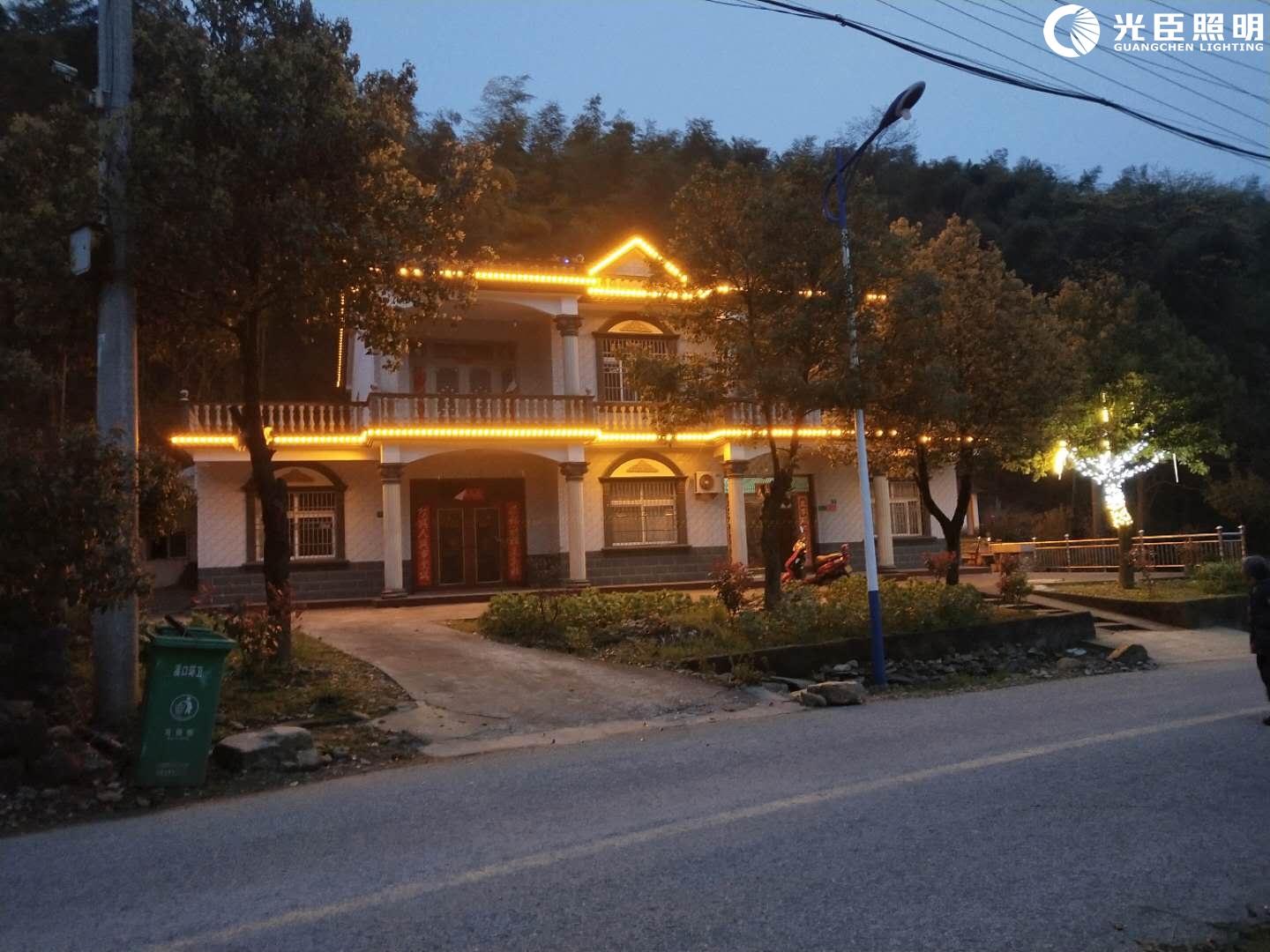 此次的項目是去年合作過一個地產(chǎn)樓盤蔡總自家房子亮化。通過上個項目,蔡總對我們產(chǎn)品質(zhì)量和服務都是豎拇指的。因為這次是鄉(xiāng)村的房子,蔡總那邊表示不要過于花哨,想要那種星星點點的感覺。有了上個項目的磨合溝通,業(yè)務員和蔡總這邊很默契,很快制定了方案,選定光臣直徑3公分點光源圍著樓體走一圈。燈光的色溫和布點位置與建筑形體、色彩和景觀空間完美結(jié)合,形成了極強的高端感受和靜謐氛圍。