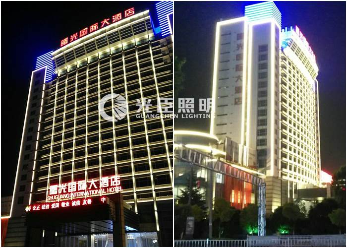 該酒店原本是已經(jīng)有做LED夜景亮化的,但是由于原來的亮化過于簡單,燈光效果暗,所以為了讓酒店成為當(dāng)?shù)匾咕暗囊淮罅咙c(diǎn),提升酒店整體形象,近期對它進(jìn)行亮化燈光的提亮工作。光臣照明有幸為這次項(xiàng)目提供了亮化燈具。