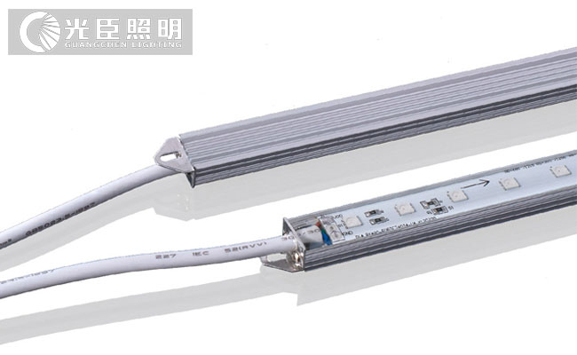 另外,由于墻面能安裝線條燈的位置有限,所以選用了體積比較迷你的2011八段外控線條燈進行安裝,中間部份選用3325貼片外控洗墻燈藏匿在墻縫中。