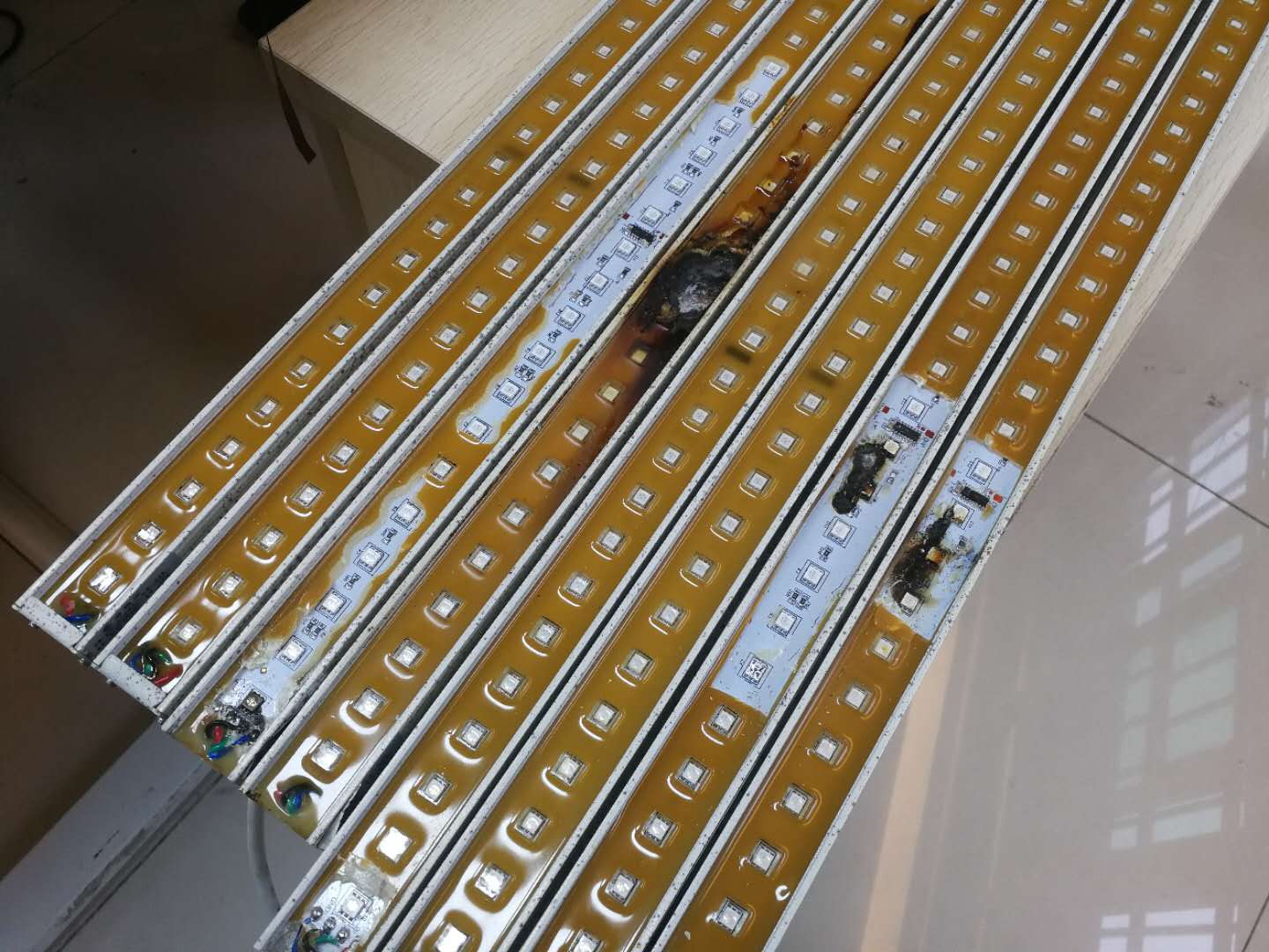 近期就有一個客戶寄回來一批燈具要維修,反饋說安裝完畢亮燈之后啪地一聲就燒糊了,經(jīng)檢查發(fā)現(xiàn)原來是有一個工人新入隊的不了解,沒看線路安裝圖,以為直接接電就可以,結(jié)果接了220V電直接導(dǎo)致燈具燒毀。