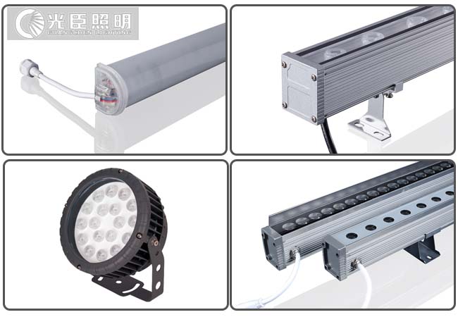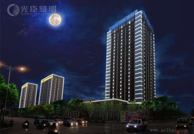 本次項(xiàng)目選用了D5037白光數(shù)碼管3000多米、24W 4048全彩洗墻燈800多套、白光洗墻燈1800多套、金黃光洗墻燈300多套、全彩DMX5125洗墻燈300多套,以及少量投光燈作為本次項(xiàng)目的三棟樓體墻亮化燈具。