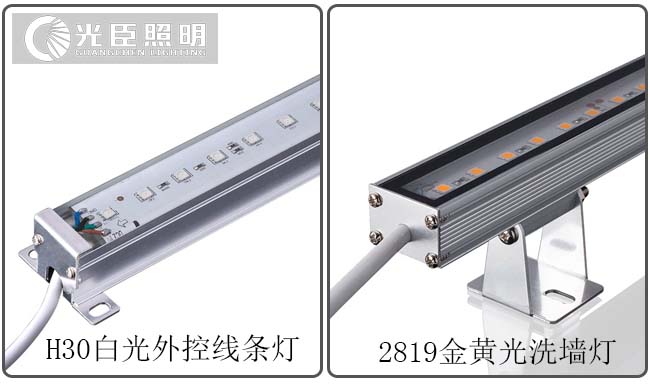 本次陶瓷廠房外墻亮化僅用了兩種燈具,以H30白光外控線條燈描繪出廠房的輪廓,針對窗臺位置,安裝了2819金黃光貼片洗墻燈作為層次突出的效果,整體效果簡潔大方。