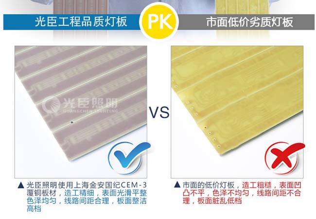 光臣照明所生產(chǎn)的LED線條燈選用上海金安國紀(jì)CEM-3覆銅板材及優(yōu)質(zhì)的鋁基板,其造工精細(xì)、表面光滑平整、色澤均勻、線路間距合理、板面整潔、導(dǎo)熱性好。精心的計(jì)劃不如一次實(shí)在的行動,如果您對線條燈價格存在疑問可以直接撥打客服直線:18826034118進(jìn)行打樣驗(yàn)貨。