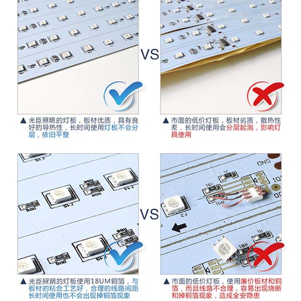 針對PCB板材的材質(zhì)來分析,PCB板也有分很多種質(zhì)量層次,市面上大部份廉價的線條燈選用的是二次料的PCB板材,這種板材在受熱后容易分層、銅箔太薄容易掉、粘合性不好銅箔層和PCB板層容易分開,更不用說線路穩(wěn)定性如何,板材都這樣還指望線路是穩(wěn)定的嗎?別開玩笑了,大家都很忙!大多數(shù)便宜的線條燈它沒有經(jīng)過合理的線路布局和檢驗(yàn)測試去測評它的可靠性和穩(wěn)定性。而正規(guī)的LED線條燈廠家所生產(chǎn)出來的產(chǎn)品肯定會做到這一點(diǎn)才能在市面上銷售。